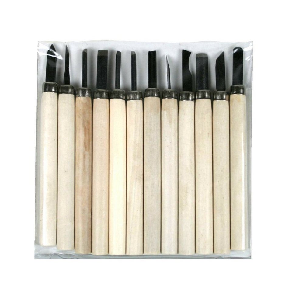 BENSON Schnitzgerät 12-tlg. Schnitzmesser, Hohleisen und Schnitzeisen für Holzarbeiten